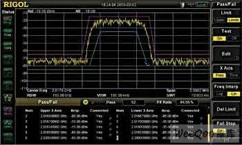 對(duì)于問題三可以利用DSA1030A頻譜分析儀中的Pass/Fail功能來解決。用戶根據(jù)實(shí)際的需求提前編輯好兩條標(biāo)準(zhǔn)跡線即測(cè)量的上限和下限,開啟該功能后會(huì)對(duì)測(cè)量結(jié)果進(jìn)行統(tǒng)計(jì)通過率。在測(cè)量失敗的時(shí)候會(huì)自動(dòng)停止測(cè)量,查看測(cè)量失敗的頻率和幅度。如圖3所示,利用Pass/Fail功能監(jiān)控信號(hào)的大小。