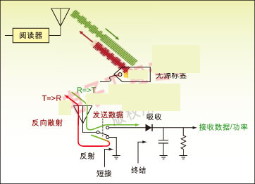 圖1:無源標簽對射頻 RF能量進行整流并調(diào)制信號,然后反向散射反射給閱讀器。