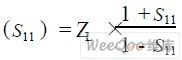 在載波頻率為13. 56 MHz時(shí),通過在TX1 和TX2 兩點(diǎn)測(cè)量天線線路的反射系數(shù)(即參數(shù)S11 )來手動(dòng)調(diào)諧,直到天線電路的輸入阻抗達(dá)到目標(biāo),計(jì)算方程如下: