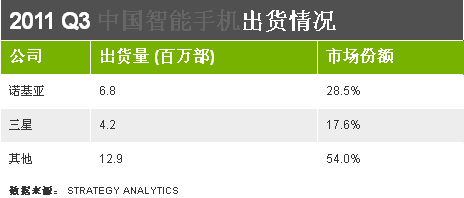 - 諾基亞仍占中國智能手機(jī)市場份額為28%