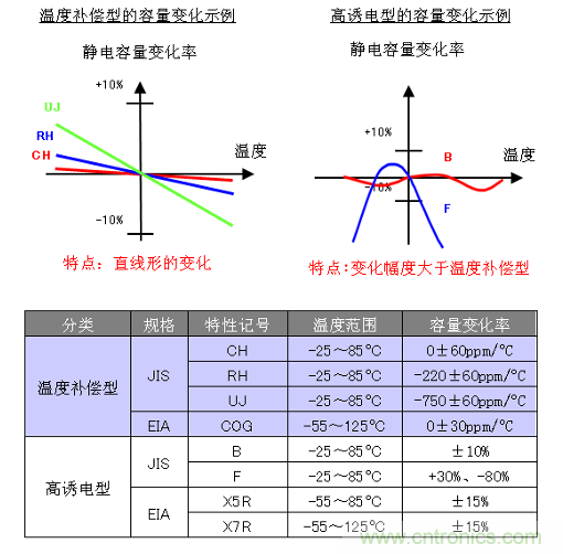 圖2:陶瓷電容器的溫度特性與規格