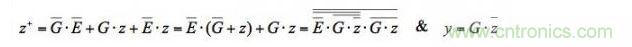 從這個公式可以看出,其中針對z+的最小項[E●z]不是多余的。它在最小項[G●E]和[G●z]之間扮演著反競爭橋的重要角色,可以消除G的所有邊沿處的連續競爭。
