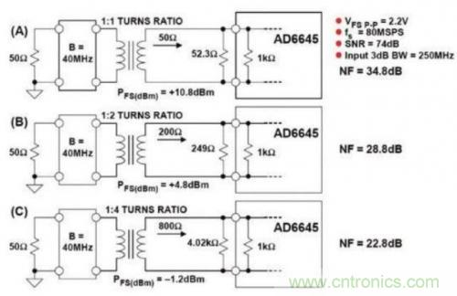 過采樣并不是改善ADC噪聲系數(shù)的唯一途徑。您你可以使用變壓器在“無噪聲”增益下提高ADC的輸入電壓。
