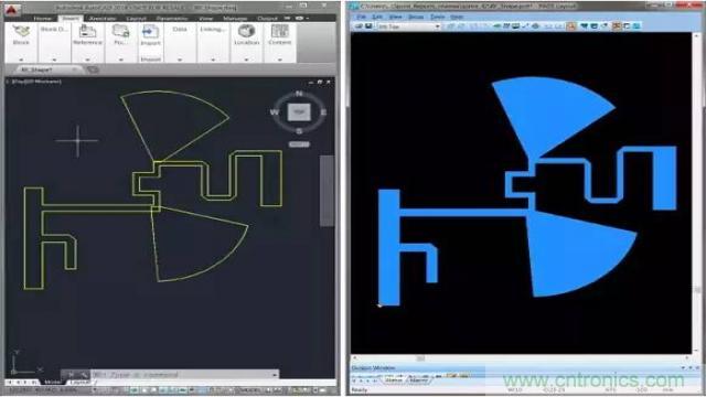 類似前面描述的一些嚴(yán)重錯(cuò)誤可能導(dǎo)致電路性能低下,甚至無(wú)法工作。為了盡量減少錯(cuò)誤、簡(jiǎn)化射頻設(shè)計(jì)任務(wù)以及提高生產(chǎn)率,PCB 設(shè)計(jì)工具可以針對(duì)復(fù)雜的銅皮形狀提供導(dǎo)入控制。例如,您可以通過(guò)控制DXF 文件中的層,并將其重新映射至CAD 電氣系統(tǒng)層,來(lái)創(chuàng)建可用的銅皮形狀(圖1)。