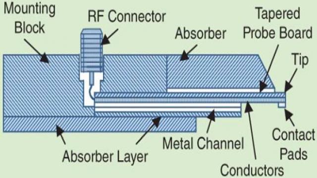 EM場分布圖的轉換是由處于單個探針組裝內的若干個射頻過渡措施來維持的。一個傳統的射頻探針是由下列幾個部分組成的: