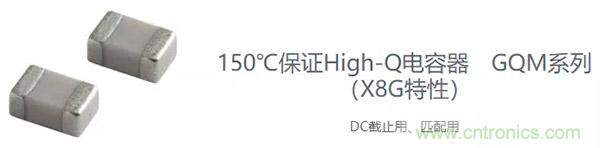 村田制作所的High-Q電容器,除傳統125℃保證品(C0G特性),又將150℃保證品(X8G特性)新增到產品陣容。通過降低DC截止用、匹配用電容器周邊溫度的制約,可提高設計自由度。