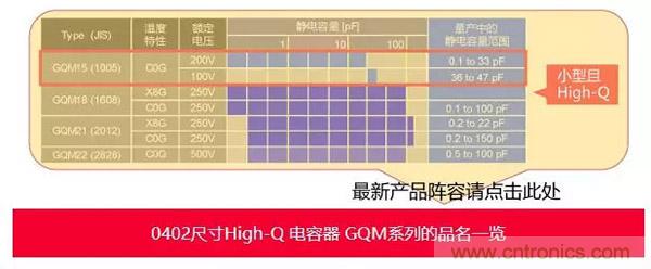 村田制作所的High-Q電容器除傳統的0603尺寸外,還新增0402尺寸到產品陣容。通過獨創(chuàng)的構造、材料,即使靜電容量值很低,與標準規(guī)格產品(GRM系列)相比,也可實現高Q值。因兼具匹配用電容器的小型化和高Q值,有助于實現高頻PA電路設計的高密度化。