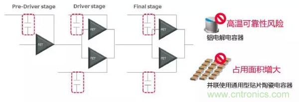 為使PA動作穩(wěn)定,使用環(huán)境變化對于選擇大靜電容量所需要的Vdrain的晶體管用電容器產生很大的影響。