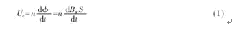 電磁感應式傳感器的工作原理是:當它貼著鋼管表面掃查時,鋼管缺陷產(chǎn)生的漏磁場會引起穿過線圈的磁通量變化,從而使電磁線圈中產(chǎn)生感生電動勢,形成缺陷信號。當檢測用的電磁線圈與鋼管做相對運動時,檢測漏磁場的線圈所產(chǎn)生的感應電動勢Uc為:
