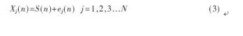 式中,S(n)為真實的被測量值,ej(n)(j=1,2,3...N)為第j個傳感器在n時刻的加性噪聲,Xj(n)為第j個傳感器在n 時刻的實際測量值。由于每個傳感器受到噪聲干擾的程度不同,所以實際測量值偏離真實的被測量值的程度也是不同的。