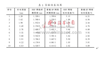 仿真實驗結果表明:利用RBF神經(jīng)網(wǎng)絡融合能比較精確地檢測到信號缺陷深度,在學習能力和檢測精度上,RBF神經(jīng)網(wǎng)絡均優(yōu)于常規(guī)BP神經(jīng)網(wǎng)絡,該方法的平均絕對誤差一般為2.69%,而常規(guī)BP神經(jīng)網(wǎng)絡的平均絕對誤差為5.47%。可見,前者檢測效果明顯好于后者。