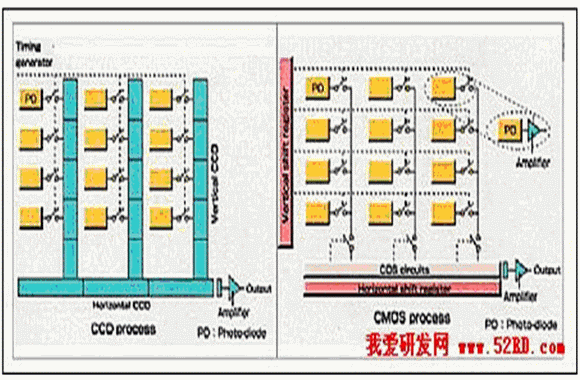 - 通過圖片形象比較CCD和CMOS在構造和性能的不同
