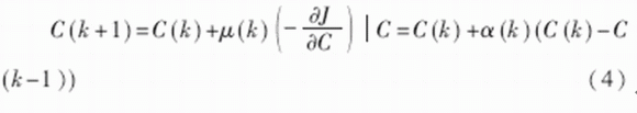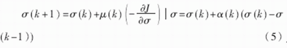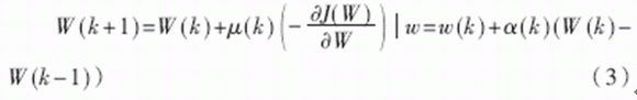 其中,μ(k)為學(xué)習(xí)率,α(k)為動(dòng)量因子,也稱為遺忘因子,又稱動(dòng)量項(xiàng)或阻尼項(xiàng)。將其稱為遺忘因子可從對(duì)于新舊信息的學(xué)習(xí)與遺忘的角度來理解;稱為動(dòng)量項(xiàng)或阻尼項(xiàng)是因?yàn)樵诰W(wǎng)絡(luò)的學(xué)習(xí)訓(xùn)練中,此項(xiàng)相當(dāng)于阻尼力,當(dāng)訓(xùn)練誤差迅速增大時(shí),它使網(wǎng)絡(luò)發(fā)散得越來越慢。總之,它使網(wǎng)絡(luò)的變化趨于穩(wěn)定,有利于網(wǎng)絡(luò)的收斂。