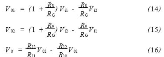 移用放大器從電路結構可知,這是一種同相并聯差動放大器,其對稱性結構使整個放大器具有很高的共模抑制能力,特別是適用于長距離測量。其數學模型為: