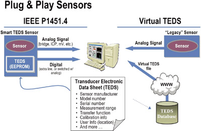 IEEE1451.3啟動(dòng)處在多分支網(wǎng)絡(luò)中的傳感器的運(yùn)行;于2003年通過(guò)的IEEE P1451.4規(guī)定與數(shù)字傳感器相關(guān)的數(shù)據(jù)(像傳感器的類別、型號(hào)、操作參數(shù)以及位置等)必須能夠以電子數(shù)據(jù)表的格式從整合在傳感器中的EEPROM(電可擦除只讀存儲(chǔ)器)存儲(chǔ)器中讀取,這種數(shù)據(jù)表被稱為變換器電子數(shù)據(jù)表(TEDS-Transducer Electronic Data Sheet)。IEEE P1451.4標(biāo)準(zhǔn)極大地簡(jiǎn)化了傳感器的布線以及更換故障傳感器的問(wèn)題。它同時(shí)也免除了傳感器在設(shè)置和校準(zhǔn)方面的人工干預(yù),這種干預(yù)即費(fèi)時(shí)又易出錯(cuò)。這樣傳感器就成了即插即用的裝置。在國(guó)家儀器網(wǎng)站(National Instruments’ web site)中有一個(gè)有效TEDS的數(shù)據(jù)庫(kù),它包括了可以在IEEE P1451網(wǎng)絡(luò)中使用的各種老式的或沒(méi)有EEPROM的傳感器的專門(mén)資料。IEEE 1451.5標(biāo)準(zhǔn)仍在審核階段,它規(guī)定的是將TEDS連接到無(wú)線網(wǎng)絡(luò)中的必要條件,如與802.11、藍(lán)牙或ZigBee等的連接。最近又提出了IEEE 1451.6標(biāo)準(zhǔn)議案,它定義TEDS和CAN總線的接口。