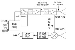 在圖2所示傳感器網(wǎng)絡系統(tǒng)框圖中,基于77GHzMMIC技術的雷達傳感器是構成汽車雷達網(wǎng)絡的前端關鍵硬件,后端的信息處理需要用數(shù)字信號處理器等高速運算單元來完成。傳感器、數(shù)字信號處理單元以及數(shù)據(jù)融合決策系統(tǒng)之間采用以太網(wǎng)、高速串行連接的方式傳送數(shù)據(jù),以滿足高數(shù)據(jù)率的傳輸要求。