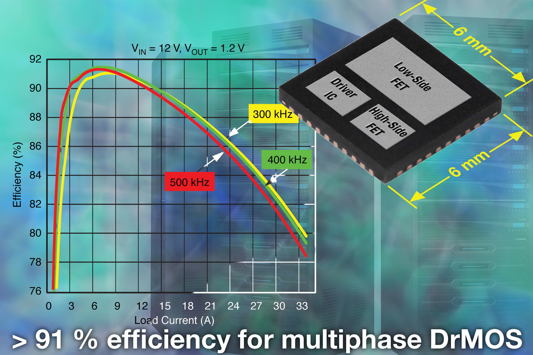 - 工作頻率超過1MHz,效率高達92%