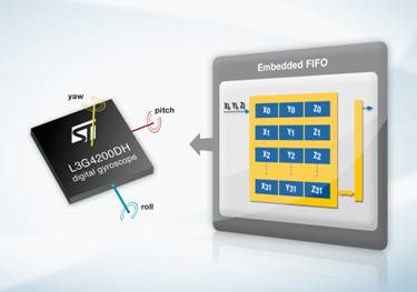 全球最大的消費電子和便攜設備MEMS傳感器供應商意法半導體進一步擴大運動傳感器產品陣容,推出一款高性能的三軸數字輸出陀螺儀。新產品內嵌一個FIFO(先入先出)存儲器模塊,可實現智能化程度更高的電源管理。