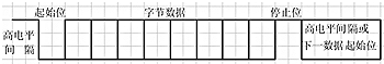 數(shù)據(jù)傳輸時(shí)使用單線串行輸出,用口線模擬串行發(fā)送,發(fā)送字節(jié)時(shí)在口線上依次發(fā)送如圖4所示數(shù)據(jù)(數(shù)據(jù)為0時(shí)拉低口線電平,數(shù)據(jù)為1時(shí)拉高口線電平),位持續(xù)時(shí)間根據(jù)波特率計(jì)算,本應(yīng)用中設(shè)定波特率為9600b/s。當(dāng)沒(méi)有數(shù)據(jù)發(fā)送時(shí),輸出口線上維持高電平。