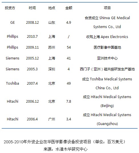 對(duì)外資企業(yè)來(lái)說(shuō),由于歐美日等成熟市場(chǎng)趨于飽和,中、印等飛速增長(zhǎng)的新興市場(chǎng)將是未來(lái)增長(zhǎng)動(dòng)力。外資企業(yè)一方面在中國(guó)加大投資并購(gòu)力度,建設(shè)生產(chǎn)研發(fā)基地,提高產(chǎn)能,整合全球供應(yīng)鏈;另一方面根據(jù)中國(guó)市場(chǎng)的需求推出普及型產(chǎn)品。針對(duì)中國(guó)醫(yī)改重點(diǎn)投入基層醫(yī)療機(jī)構(gòu),GE、西門(mén)子、飛利浦等都以基層醫(yī)療市場(chǎng)戰(zhàn)略積極應(yīng)對(duì),如GE整合新華醫(yī)療渠道、西門(mén)子發(fā)展“SMART”戰(zhàn)略等。