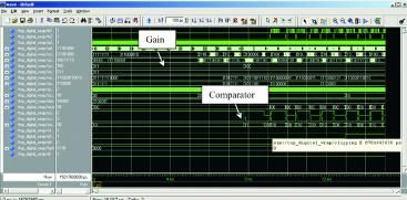 通過此項建模,可以分析與輸入信號呈函數關系的系統行為。圖 9 中的第一張圖表顯示通過改變傳感器和編碼器輪之間的距離而產生的磁輸入信號。此信號是有限元件仿真結果,之后 AMR 效應可將此信號轉化成傳感器橋的電輸出信號。中間的圖表是模擬信號處理的結果。下面一張圖表顯示輸出信號。此器件使用 A 7/14/28 mA 協議。這種協議可用來傳送額外信息,例如感測旋轉或氣隙長度。除了這些結果之外,也可以檢查數字控制的運行情況。圖 10 顯示的是 ModelSim 中的信號圖象實例。