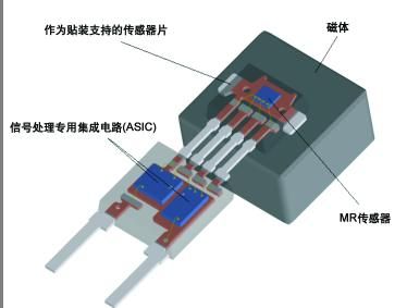 現代傳感器系統主要由兩個元件組成 —基本傳感器和信號處理專用集成電路 (ASIC)(圖 1)。現已證明,后來由 Lord Klevin 于 1857 年發現的各向異性磁阻效應特別適用于檢測磁場。首先考慮通常具有多種磁疇結構的鐵磁性材料。這些稱之為韋斯磁疇的結構,其內部磁化的方向彼此不同。如果將這種材料平鋪為一薄層,那么磁化矢量處于材料層平面方向。另外,可較精確地假設只存在一個磁疇。當這種元件暴露于外部磁場中時,后者會改變內部磁化矢量的方向。如果同時一股電流通過該元件,就會產生電阻(圖 2),這取決于電流和磁化之間的角度。當電流和磁化方向彼此成直角時,電阻最小,當二者平行時,電阻最大。電阻變化的大小取決于材料。鐵磁性材料的性質也決定對溫度的依賴性。電阻最大變化為 2.2% 并且對溫度變化反應良好的最佳合金是 81% 的鎳和 19% 的鐵組成的合金。恩智浦所有傳感器系統中的基本傳感器都采用這種強磁鐵鎳合金。在惠斯登電橋電路中單獨配置幾個 AMR 電阻,以增強輸出信號并改善溫度反應特性。此電路也可在制造過程中進行微調。圖 3 顯示如何在裸片上配置 AMR 元件。