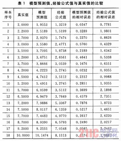為了驗(yàn)證測試結(jié)果的可靠性,根據(jù)網(wǎng)絡(luò)訓(xùn)練的結(jié)果,把測試結(jié)果與真實(shí)值進(jìn)行對(duì)比。為了突出該方法的優(yōu)越性,與經(jīng)驗(yàn)公式計(jì)算出來的距離值進(jìn)行比較。表1為模型預(yù)測值、經(jīng)驗(yàn)公式值與真實(shí)值的比較。