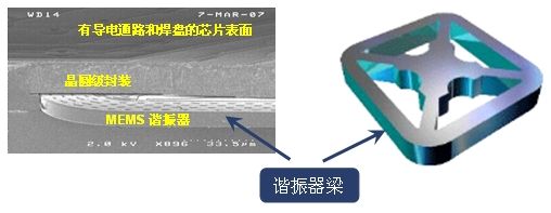 圖2:MEMS諧振器與模擬IC集成在一起,可以采用低成本的塑料封裝