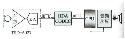 目前國(guó)際上IC廠商推向市場(chǎng)的內(nèi)置式數(shù)字傳聲器IC芯片普遍采用∑一△模數(shù)轉(zhuǎn)換編碼格式,此編碼格式與相關(guān)應(yīng)用設(shè)備采用的DSP及CODEC芯片的數(shù)字傳聲器輸入接口格式相兼容。