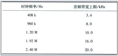 取樣時(shí)鐘與音頻帶寬上限的關(guān)系見(jiàn)表1.