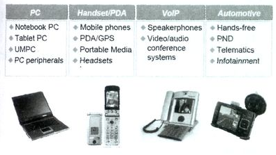 數(shù)字ECM或MEMS傳聲器和傳統(tǒng)的ECM傳聲器相比,有著不可取代的優(yōu)勢(shì)。首先,移動(dòng)設(shè)備向小型化數(shù)字化發(fā)展,急需數(shù)字拾音器件和技術(shù)與之配套;第二,數(shù)字設(shè)備包含的功能單元越來(lái)越多,如筆記本式計(jì)算機(jī),集成了藍(lán)牙和WiFi無(wú)線功能,傳聲器的安裝位置距離這些干擾源很近,設(shè)備對(duì)傳聲器抗干擾性能的要求越來(lái)越高;第三,隨著三網(wǎng)合一的發(fā)展,需要上網(wǎng)、視頻和語(yǔ)音傳輸可以同時(shí)進(jìn)行,這在移動(dòng)設(shè)備中通常會(huì)遇到環(huán)境背景噪聲和線路回聲的影響;第四,從提高生產(chǎn)效率的角度考慮,希望對(duì)傳聲器元件采用SMT工藝焊接組裝。數(shù)字傳聲器尤其是具有集成電路本質(zhì)的微機(jī)電( MEMS)數(shù)字傳聲器更加適合SMT焊接組裝工藝,為了解決系統(tǒng)各種射頻干擾對(duì)語(yǔ)音通信產(chǎn)生的噪聲,數(shù)字傳聲器尤其適用于通過(guò)算法編程達(dá)到陣列拾音技術(shù)的實(shí)現(xiàn),對(duì)于抑制環(huán)境背景噪聲和消除通話時(shí)的線路回聲方面具有突出的技術(shù)優(yōu)勢(shì),數(shù)字傳聲器輸出接口格式同數(shù)字處理系統(tǒng)具有高度的接口兼容性。數(shù)字傳聲器的應(yīng)用見(jiàn)圖7~8.