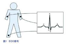心電圖機(jī)(ECG)可實(shí)時(shí)記錄病人的心跳活動(dòng)。心跳信號(hào)是通過三個(gè)連接到病人身體的電極測(cè)量出來。圖1所示為其中一個(gè)電極輸出的ECG信號(hào),圖中包含有五個(gè)測(cè)量點(diǎn),分別是Q、P、R、S、和T,這些測(cè)量點(diǎn)可用來診斷病人患上心臟病的可能性。