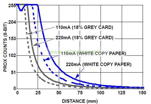 ISL29043是一款低功耗的環境光和接近檢測傳感器,典型的工作電流只有136μA(110μA用于傳感器和內部電路,約28μA用于LED),這是在220毫安紅外LED電流,點亮脈沖電流持續時間為100μs,休眠時間為800mS的條件下測得的。