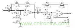 0.7 Hz的高通濾波器用來檢測心跳信號,這里采用2個二階壓控高通濾波器串聯形成的四階高通濾波器來構成O.7Hz高通濾波器,其電路如圖6所示。