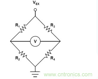 圖1:受激勵電壓VEX和差分輸出電壓V驅(qū)動的惠斯頓橋