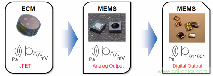 圖一,微型麥克風技術演進