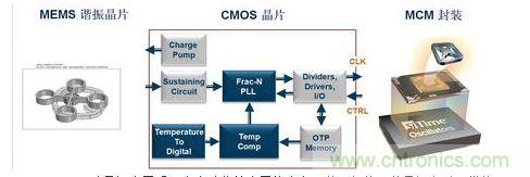 MEMS硅晶振由于采用全自動化的半導(dǎo)體工藝,內(nèi)部兩個晶片(一個是MEMS諧振晶片、一個是具有溫補功能的鎖相環(huán)CMOS電路)采用MCM封裝在一起。