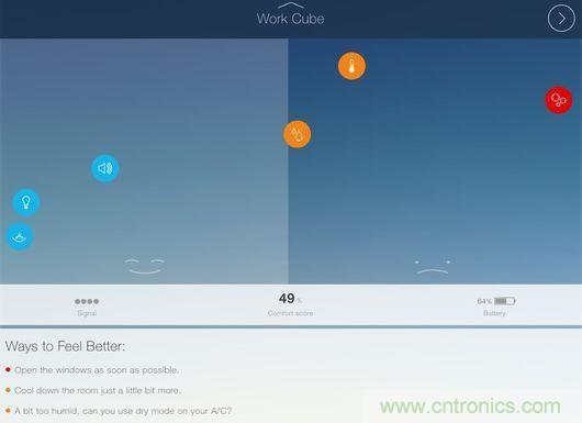 測試人員發(fā)現(xiàn),CubeSensors給出的這些信息較想象中更為有用。例如,產(chǎn)品提示一處起居室的溫度有點低,如果適當(dāng)提升溫度會讓人感覺更加舒適及放松。而在辦公室中,CubeSensors提示改善光照條件能夠幫助提升工作效率。在臥室中,產(chǎn)品給出了需要開窗以便改善空氣質(zhì)量的建議。用戶除了查看數(shù)據(jù)之外,還能看到應(yīng)用給出的實用建議,例如“盡快開窗”或“提升溫度會讓你感覺更加舒適”。盡管看起來似乎平淡無奇,但CubeSensors背后的團(tuán)隊表示,通過這些小建議,產(chǎn)品可以幫助用戶避免罹患感冒、過敏、頭疼等癥狀。