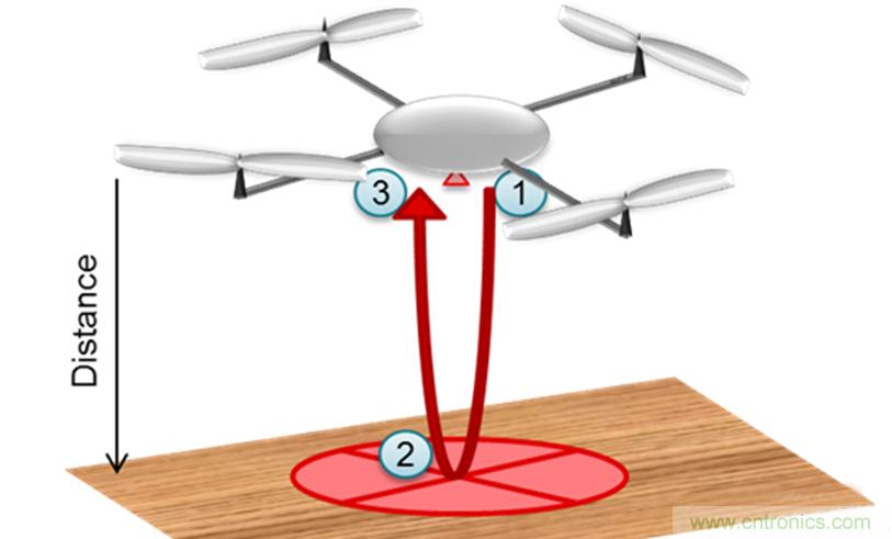 圖2:用于無人機著陸的超聲波ToF示意圖