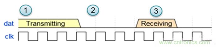 在圖2和圖3中的點1,無人機的超聲波傳感器發出聲波,在返回信號處理路徑上表示為飽和數據。發送后,信號處理路徑變為靜音(點2),直到回波從物體反射回來(點3)為止。