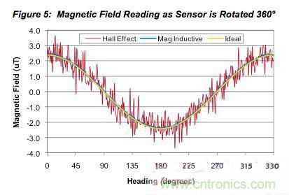 圖5:當傳感器旋轉360°時的磁場讀數。