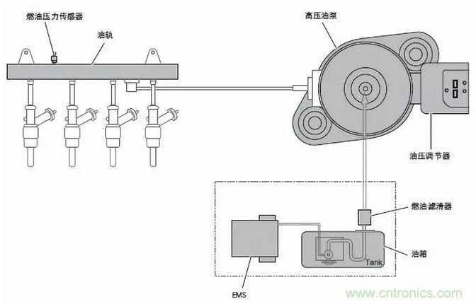 油軌壓力傳感器安裝于燃油分配器管路上。