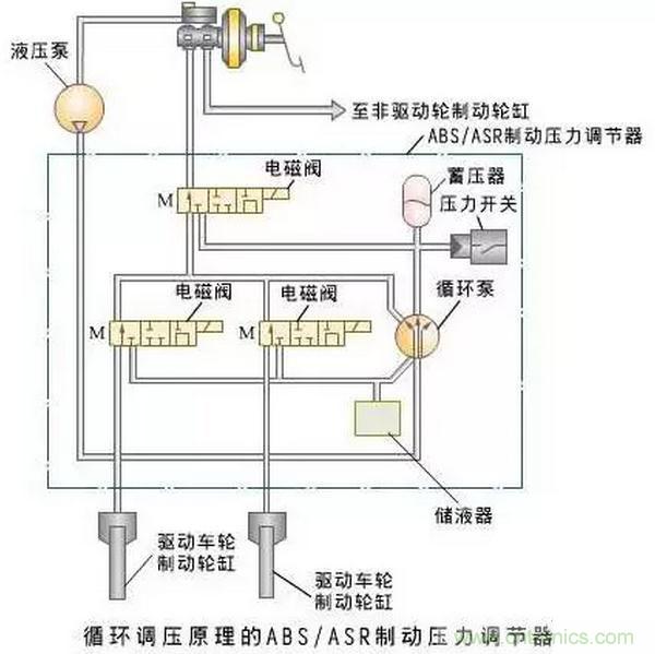 2)底盤電子控制系統包括防抱死控制系統(ABS)、防滑轉電子控制系統(ASR)、懸架電子控制系統、自動變速器電子控制系統、巡航控制系統等。