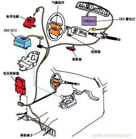 3)車身電子控制系統包括安全氣囊系統、自動空調系統、電子儀表系統及防盜系統等。