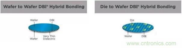 W2W和D2W DBI混合鍵合晶圓示意圖