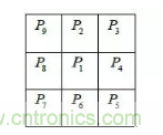 攝像機(jī)坐標(biāo)系位于攝像機(jī)中心,而世界坐標(biāo)系位于平面棋盤格靶標(biāo)上。一個特征點(diǎn)在攝像機(jī)坐標(biāo)系下坐標(biāo)與其在世界坐標(biāo)系下坐標(biāo)之間的對應(yīng)關(guān)系可以用下式來表達(dá):