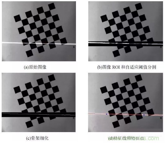 圖像處理的目的是提取激光條紋上特征點(diǎn)的圖像坐標(biāo)。