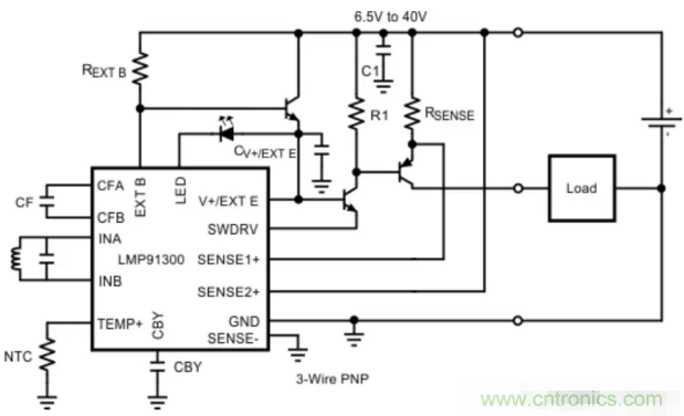 內部穩壓器允許該器件在6.5V至40V的電源范圍內工作??梢詫敵鲞M行編程,以NPN或PNP模式驅動外部晶體管。